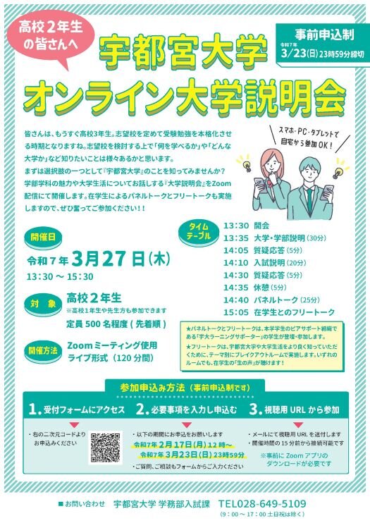 高校2年生を対象に「オンライン大学説明会」を開催します(3/27)
