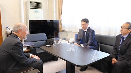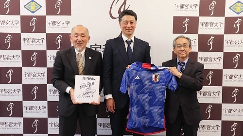サッカー日本代表テクニカルスタッフ寺門大輔様(本学教育学部OB)が学長室を訪問しました