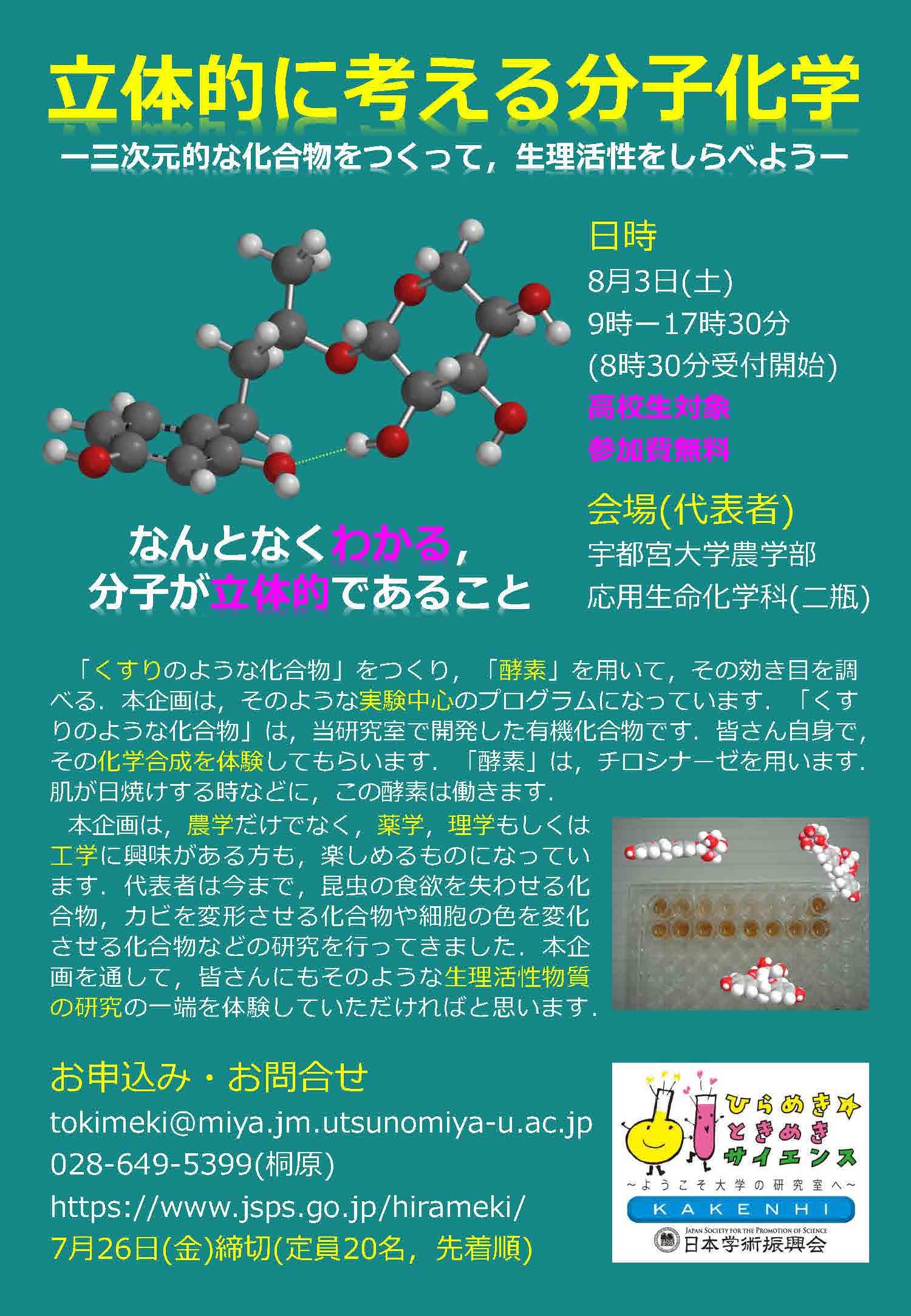 [イベント]「ひらめきときめきサイエンス~立体的に考える分子化学」を開催します(8/3(土))(募集を終了しました)