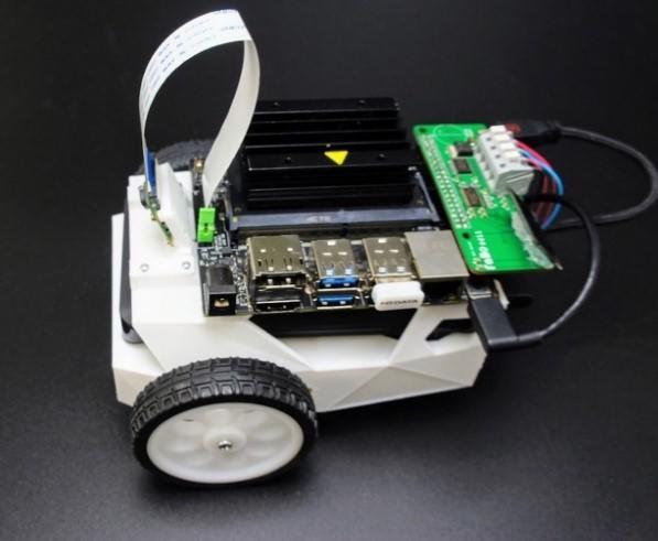 今回、これらの背景を持った3者が協力することで、より実践的かつ汎用的な教材作成と授業における効果測定を行うことが可能となります。具体的なターゲットとしては、AIロボットカー(写真)を利用した自動運転技術の習得を目指します。NVIDIAがJetson Nanoの技術情報を提供し、FaBoがAIロボットカーの設計開発とサンプルコード提供・キット化を行い、宇都宮大学が組込みシステムの授業のノウハウを提供します。ここで得られた知見を広く公開し、多くの大学、高専、高校などで利用可能とする予定です。