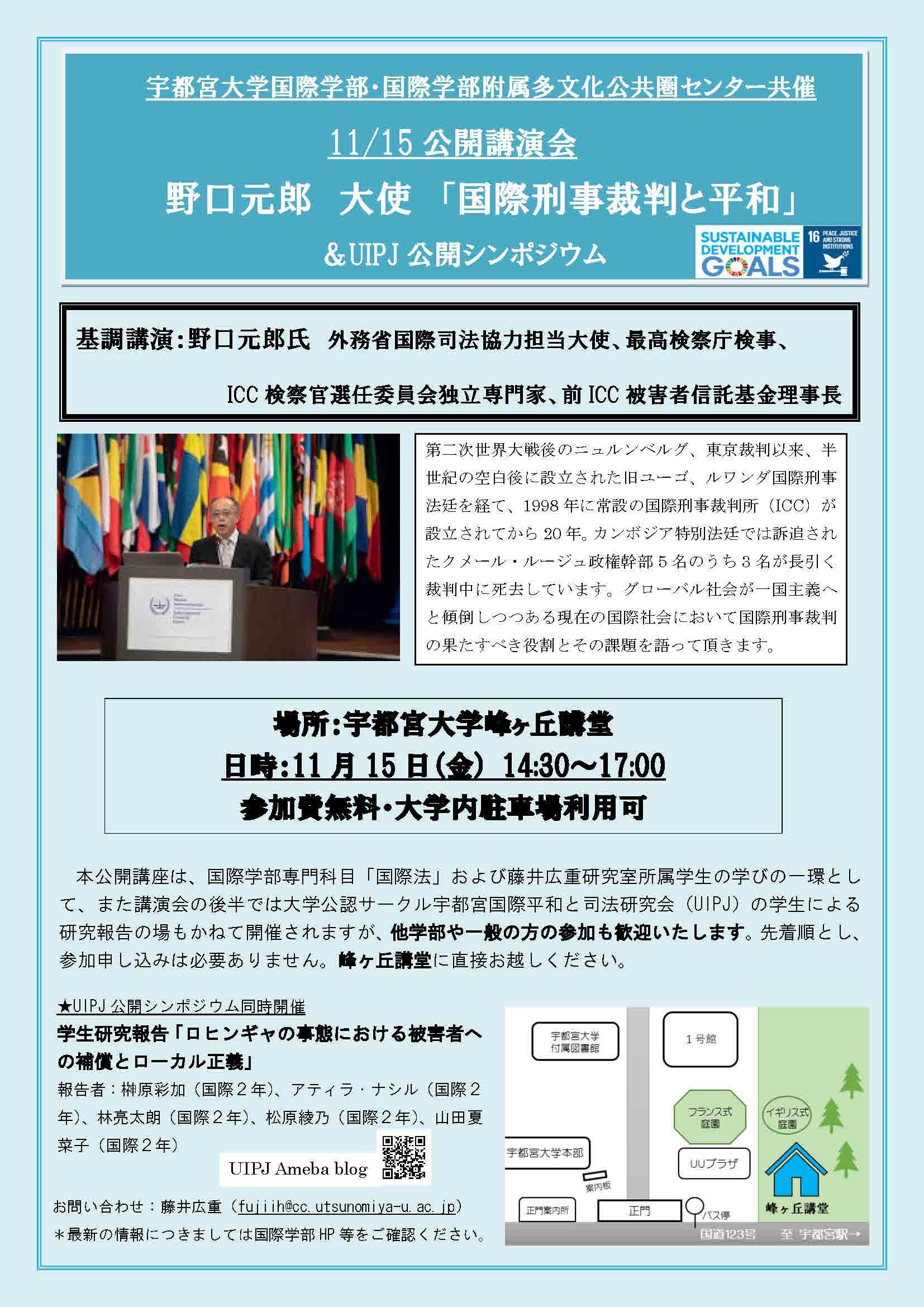 [イベント]公開講演会「国際刑事裁判と平和」を開催します(11/15(金))