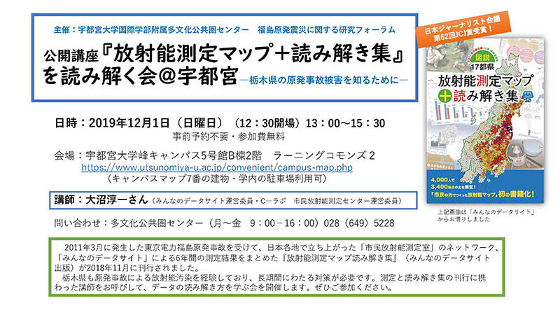 [イベント]公開講座「『放射能測定マップ+読み解き集』を読み解く会@宇都宮」を開催します(12/1(日))