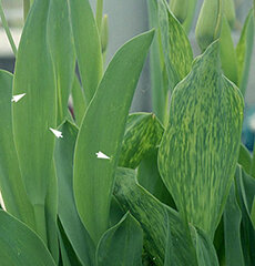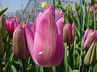 チューリップは観賞用としても人気の高い植物であり、17世紀のオランダでは花の色が変化した斑入り(ふいり)のチューリップが珍重され、チューリップの球根に対して様々な物と取引できるほどの高値がつきました。この際に取引されたチューリップは、後にウイルスの感染によって斑入りになることが分かりました。しかし、ウイルス感染によって価値が上がることは稀です。ウイルスが感染した多くの植物では商品価値が低下するため、ウイルスの感染は栽培地域を悩ませています。