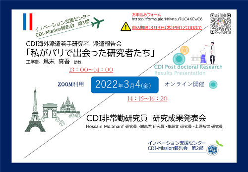 本学イノベーション支援センター主催のCDI-Mission報告会を、オンラインで開催します。