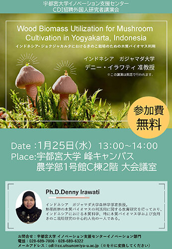 イノベーション支援センター イノベーション部門は令和4年度招聘外国人研究者として招聘したインドネシア ガジャマダ大学 デニー・イラワティ准教授の講演会を以下の通り開催します。