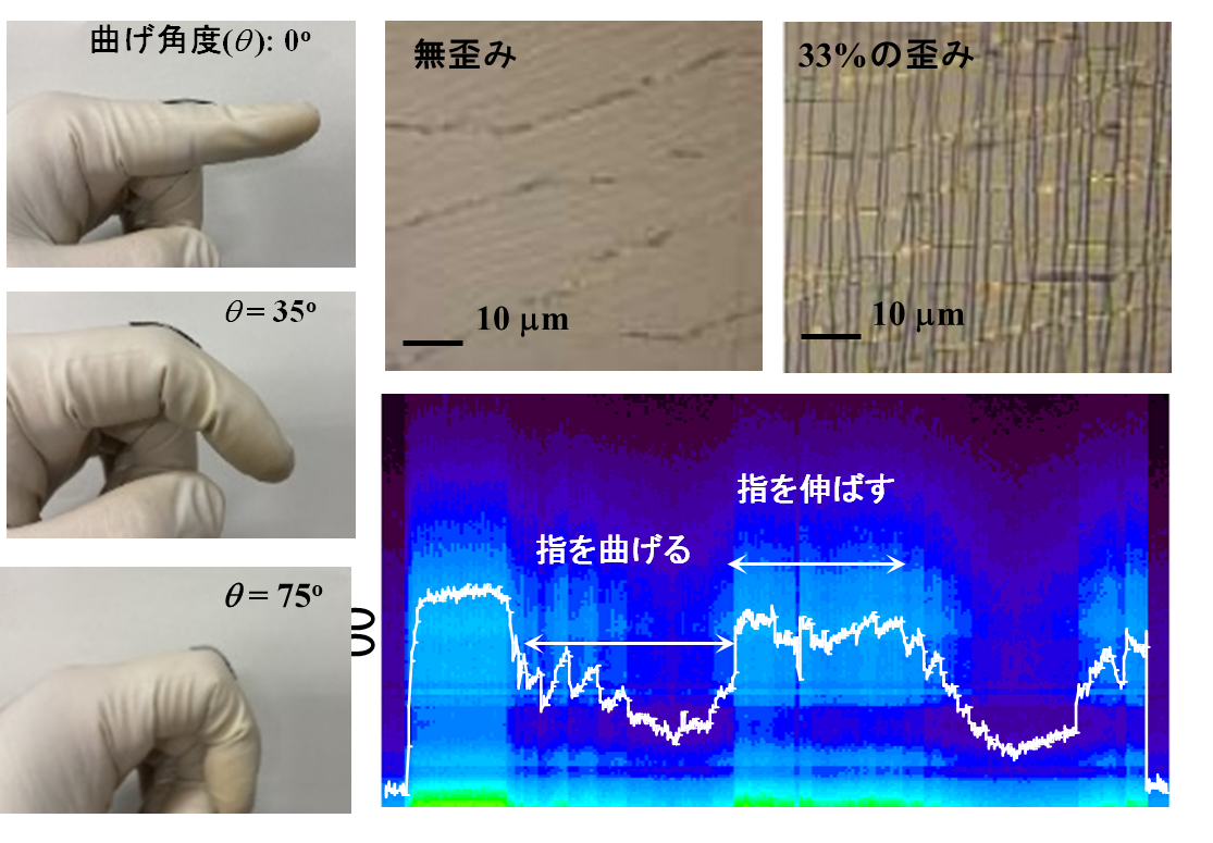 [プレスリリース]ひずみが測れる柔らかい光センサーシートの開発―生体の感覚系を模倣した亀裂の開閉動作が鍵―