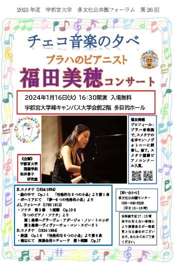 [イベント]多文化公共圏フォーラム第26回 「チェコ音楽の夕べ:プラハのピアニスト福田美穂コンサート」を開催します(1/16)