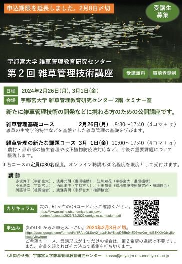 実施内容やお申込み方法などの詳細は雑草管理教育研究センターのページをご覧ください。
