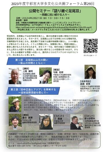 [イベント]多⽂化公共圏フォーラム第29回 公開セミナー「語り継ぐ足尾Ⅲ」 ~問題に抗い続ける人々〜を開催します(2/21)