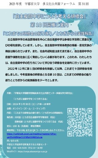 [イベント]多文化公共圏フォーラム第31回 自主夜間中学について考える研修会 第10回を開催します(3/30)
