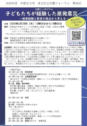 [イベント]多文化公共圏フォーラム第30回「子どもたちが経験した原発震災-被害経験と教育の視点から考える-」を開催します(3/28)