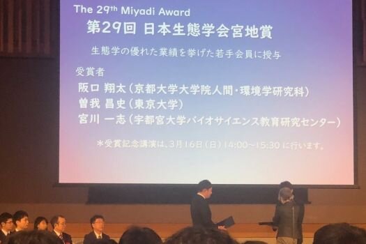 バイオサイエンス教育研究センターの宮川一志准教授が日本生態学会宮地賞を受賞しました