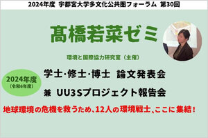 多文化公共圏フォーラム第30回「環境と国際協力研究室 学士・修士・博士論文発表会 兼 UU3Sプロジェクト報告会」を開催します(1/23) -