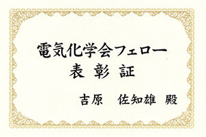 工学部の吉原佐知雄准教授が2023年度電気化学会フェローの称号を授与されました -