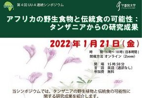第4回 UU-A連続国際シンポジウム「アフリカの野生食物と伝統食の可能性:タンザニアからの研究成果 」を開催します(1/21) -