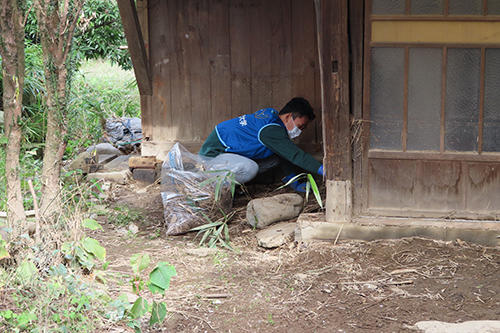 日中は天気に恵まれ、学生たちは汗をかきながら、被災者に依頼された作業に真剣に取り組んでいました。