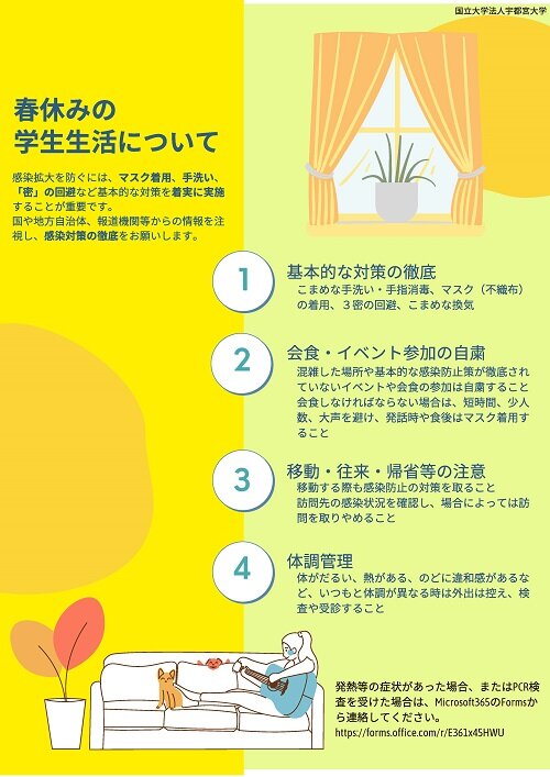 [学生のみなさんへ]春休み期間中における新型コロナウイルスの感染回避行動の徹底について(注意喚起)