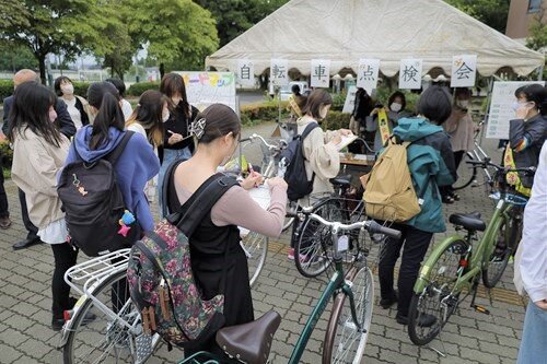 自転車点検会を利用した学生からは「空気入れも持っていないのでありがたい」「普段は点検することがないのでとても助かります」との声がありました。