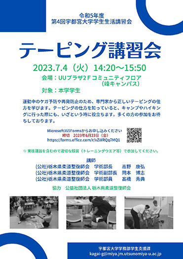 [学生の皆さんへ]令和5年度 第4回学生生活講習会 テーピング講習会