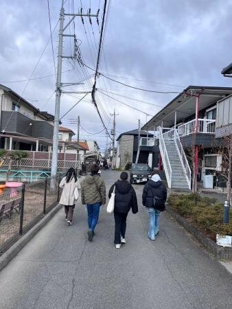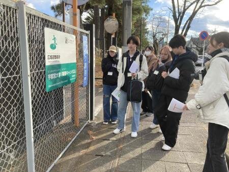 「留学生と防災まちあるき」では、石井町にある国際交流会館(留学生寮)から宇都宮大学陽東キャンパスまでグループに分かれて歩き、災害時に危険な箇所や2024年8月に洪水が発生した場所のほか、避難所や交番、公衆電話などを確認しました。留学生と日本人学生、地域の方々など合計66人が参加したほか、立命館アジア太平洋大学の教職員と留学生7人も宇都宮に視察に訪れ、まちあるきに参加して意見交換をするなど、全国的に注目され、関心度の高い活動となりました。