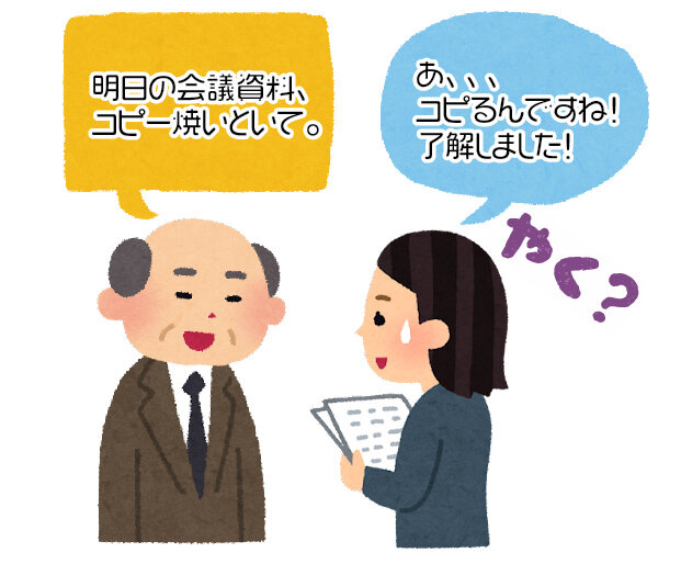 次に、会社の上司(年配者)と若手社員の会話を見てみましょう。